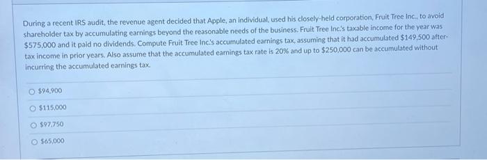 Solved During A Recent Irs Audit The Revenue Agent Decided Chegg Com